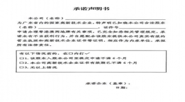 近期,省厅出了最新要求,高新技术企业办理粤Z车牌时需签署承诺书;这份承诺书内容包括承诺企业未有不当获...